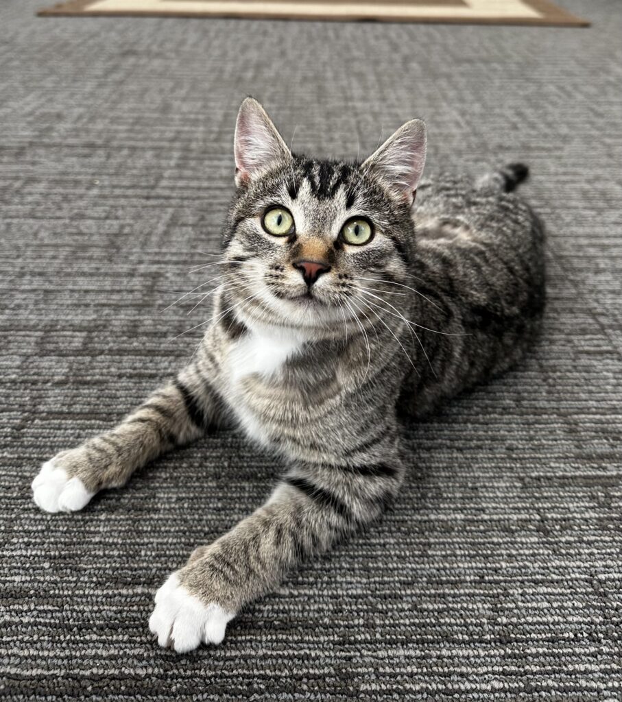 Peanut is our resident cat. He started his journey as a wild cat roaming around our construction site. We were finally able to catch him, give him veterinary care, and adopt him into our Lethbridge Pet Hospital family. He can usually be found exploring our staff area upstairs, trying to steal someone’s lunch, or taking a nap in the windowsill of our staff plant room.